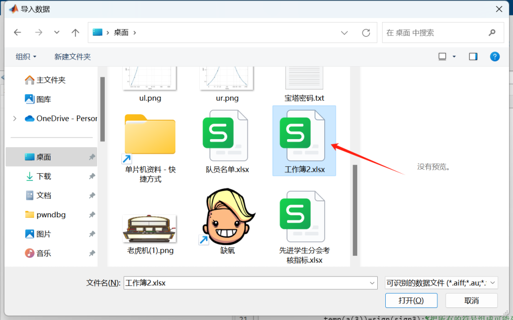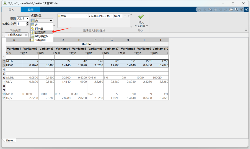 预先准备好存放数据的Excel文件,打开matlab,选择导入数据
