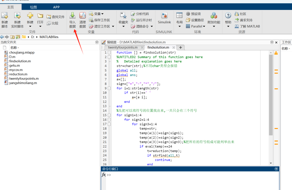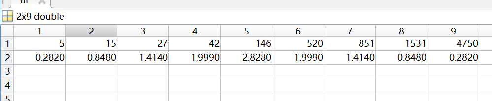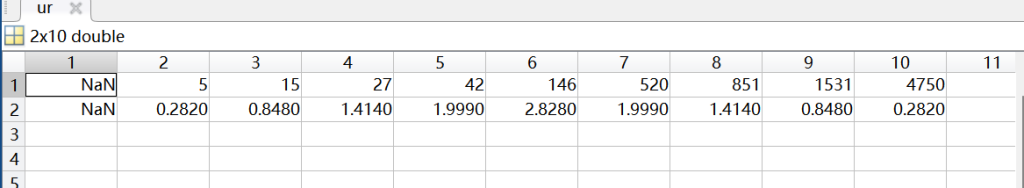 为了方便后续的操作,我们先把矩阵中的数据给提取出来,分成f变量和u变量,在命令行中输入如下代码