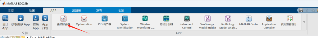 首先点击matlab上方导航栏APP选项,选择里面的曲线拟合器