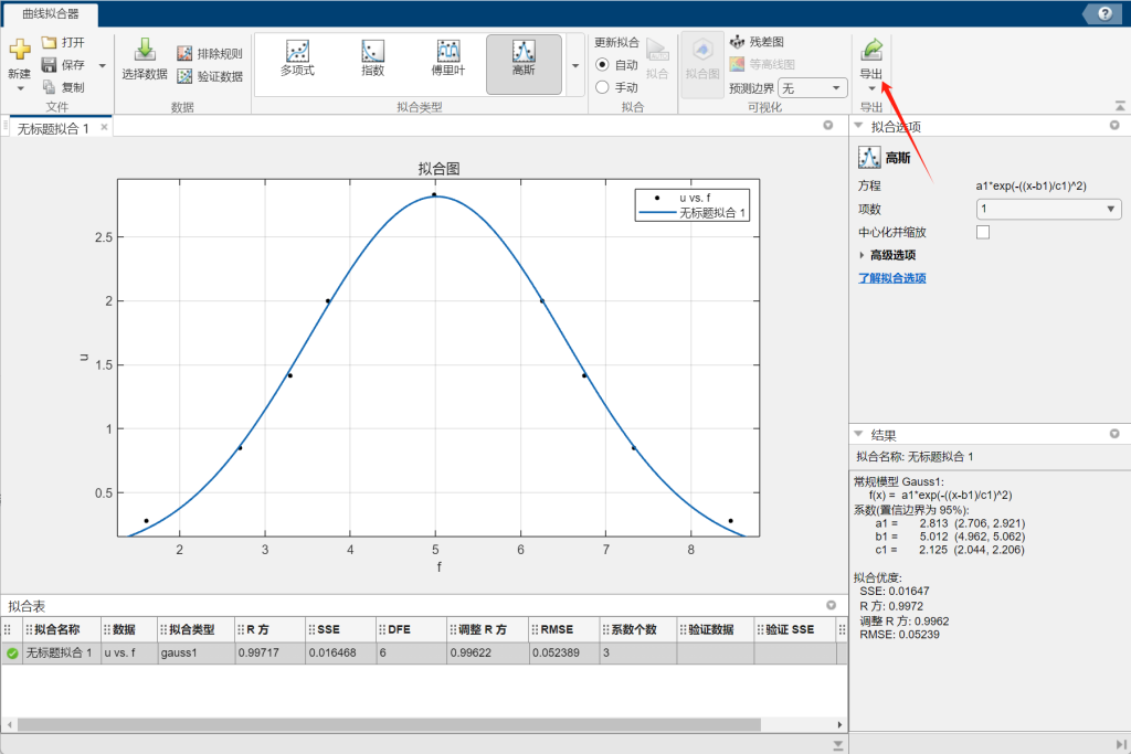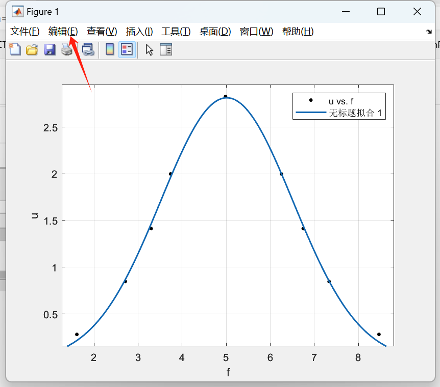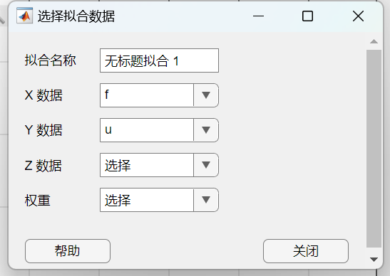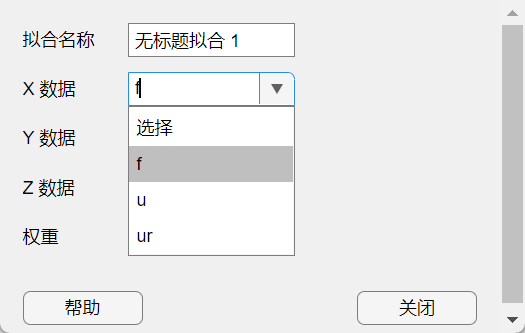 x数据选择刚才的f,y数据选择刚才的u,关闭