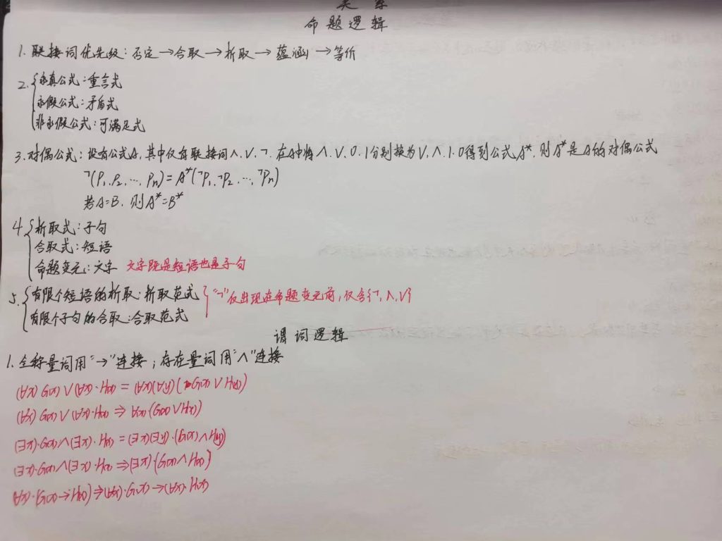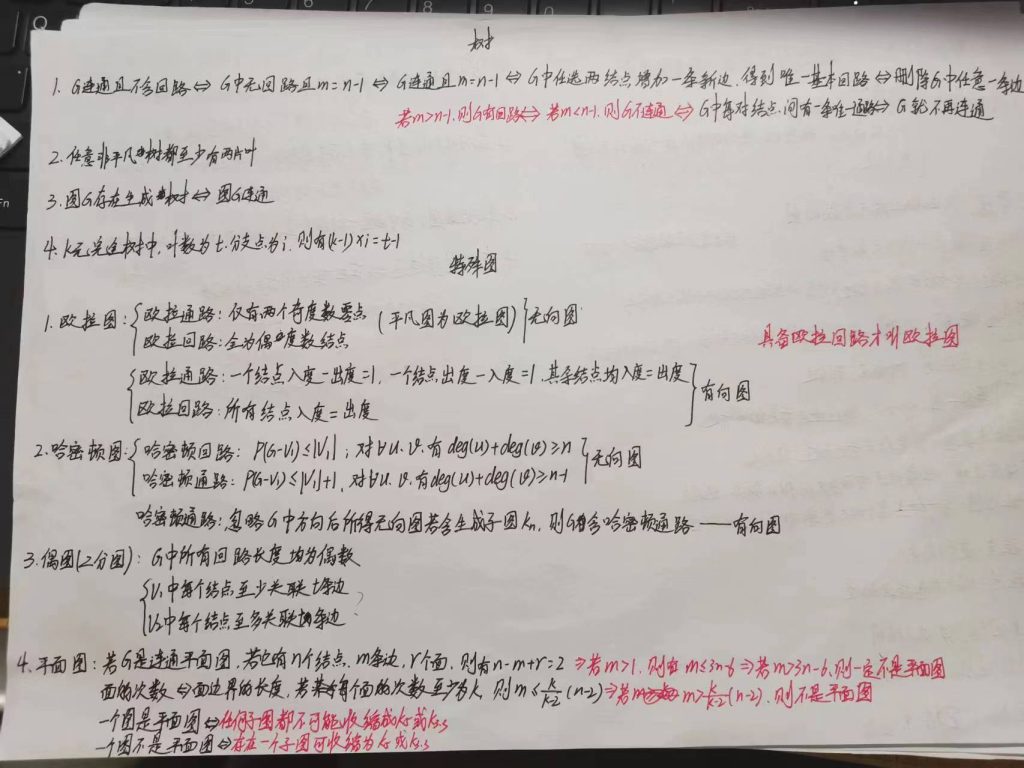 离散数学(手抄版复习资料) 学习资料 | 242 | 0 | 2024-6-21 0:16 59 字 | 几秒读完 温馨提示:以下所有资料都是我自己认为重要的或者不会的,并不全面,有些我很熟的没有抄上去,复习时还是以书本和练习题为主 赞赏