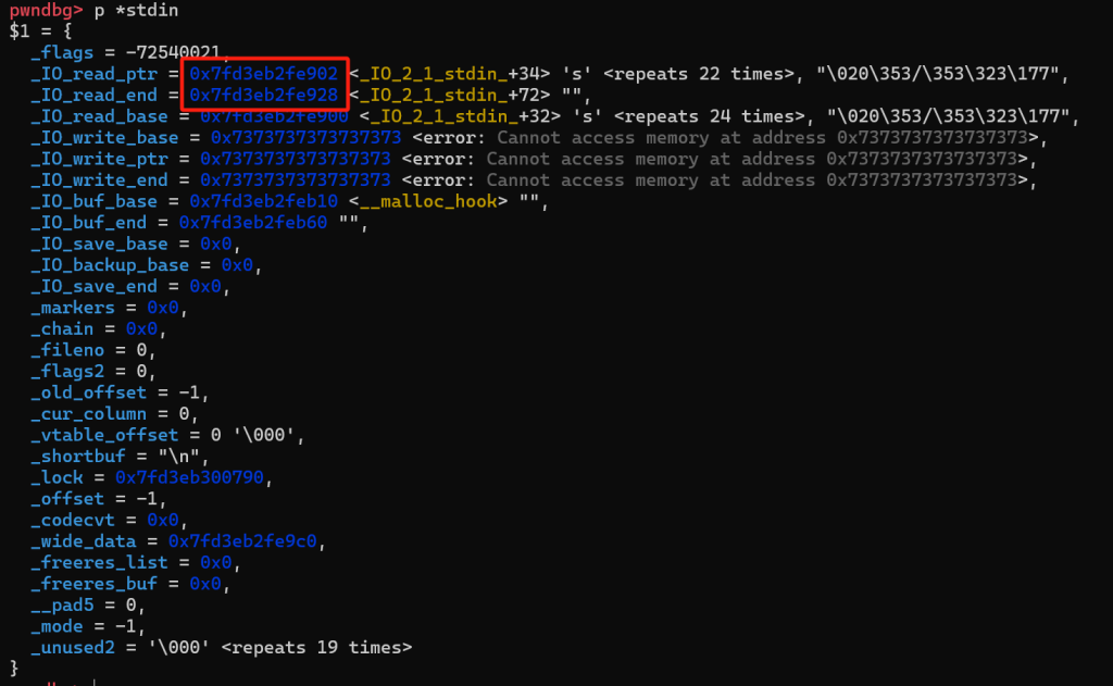 stdin是一个libc里的结构体,他里面存放有输入缓冲区和下一个该读取的数据的起始位置等,详情可以参见我写的另一篇文章stdin学习,再往下读之前一定要把我stdin学习这篇文章里的链接文章读透
