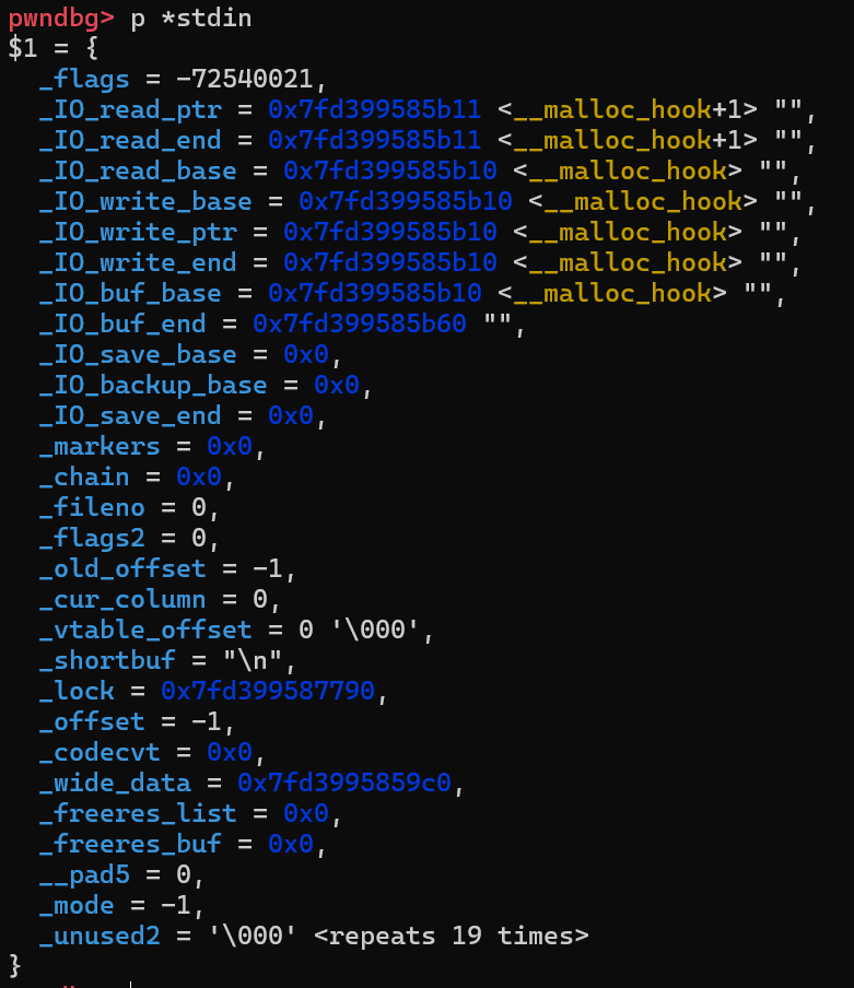 在gdb里输入p *stdin,即可查看stdin结构体的结构
