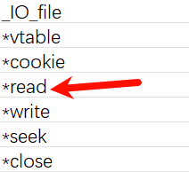 原本调用overflow时,应该是找这个表偏移为3的位置,现在把vtable伪造成_IO_cookie_jumps+0x58,那应该在此基础之上再往下找3个偏移,也就是在原来的基础之上找11(0x58对应的偏移)+3的偏移,数一数发现刚好就是_IO_cookie_read,这不正好就是我们提到的危险函数吗?所以现在你应该清楚到底该如何调用这个危险函数了。