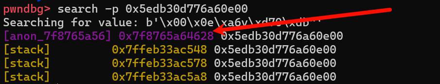 接下来利用search -p命令搜索canary对应的值