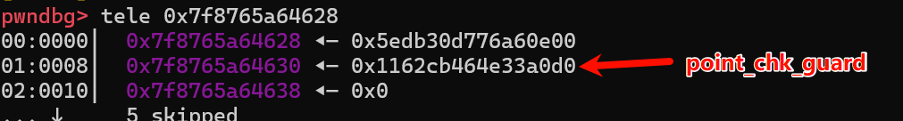 方法1不必多说,方法2怎么去找到point_chk_guard在哪呢?如果程序开了canary,我们可以先查看canary的值