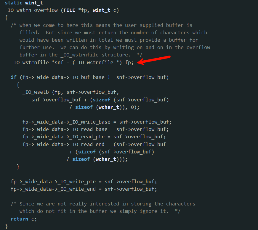接下来,在我们调用_IO_wstrn_overflow函数时,会执行如下操作,我们结合源码来分析