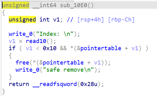 删的时候指针表没置零,存在UAF