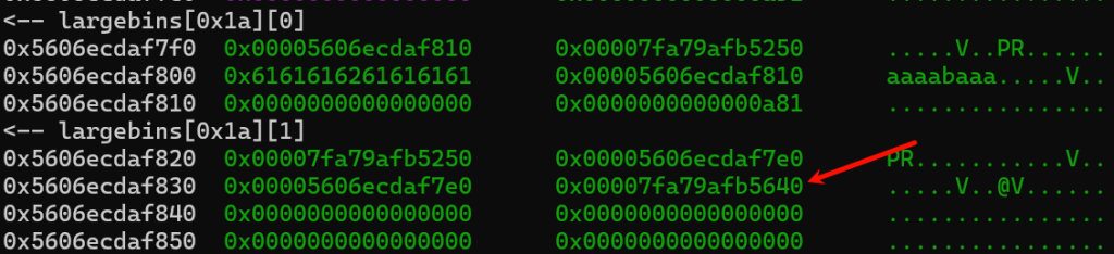 3、能使用一次largebin attack(一次即可)