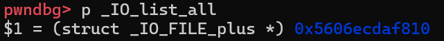 伪造的largebin的各项指针已经被修改,同时_IO_list_all已经修改成堆地址