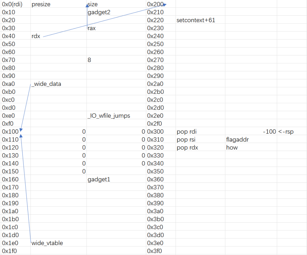 largebin attack之后把_IO_list_all改成堆地址,接着打一个apple2即可劫持程序控制流,但是由于程序禁用了open和openat2,所以常规的orw不能用,故一下有两个思路