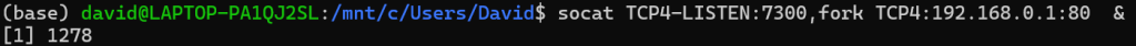 socat TCP4-LISTEN:7300,fork TCP4:192.168.0.1:80 &