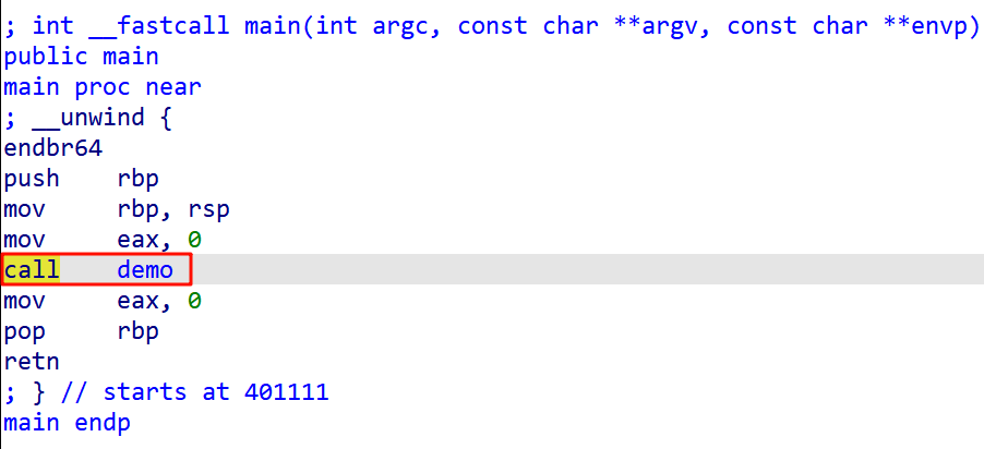 这条指令相当于干了两件事:把当前指令(call)的下一条指令(mov)的地址压栈,跳转到demo