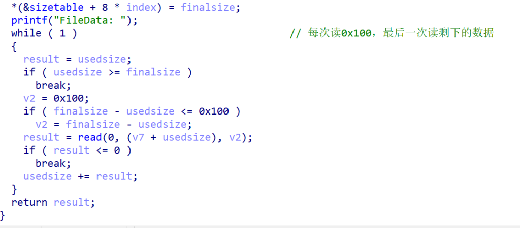 最后会将size表赋值,然后读入你输入的size大小的数据,必须读完,有点像进阶版的calloc,这就导致了想要指针残留是不可行的