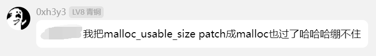 0xh3y3师傅说把malloc_usable_size patch成malloc也过了,确实难绷