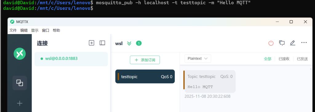 mosquitto_pub -h localhost -t testtopic -m "Hello MQTT"
