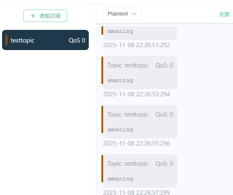 (1)Topic,可以理解为消息的类型,订阅者订阅(Subscribe)后,就会收到该主题的消息内容(payload);